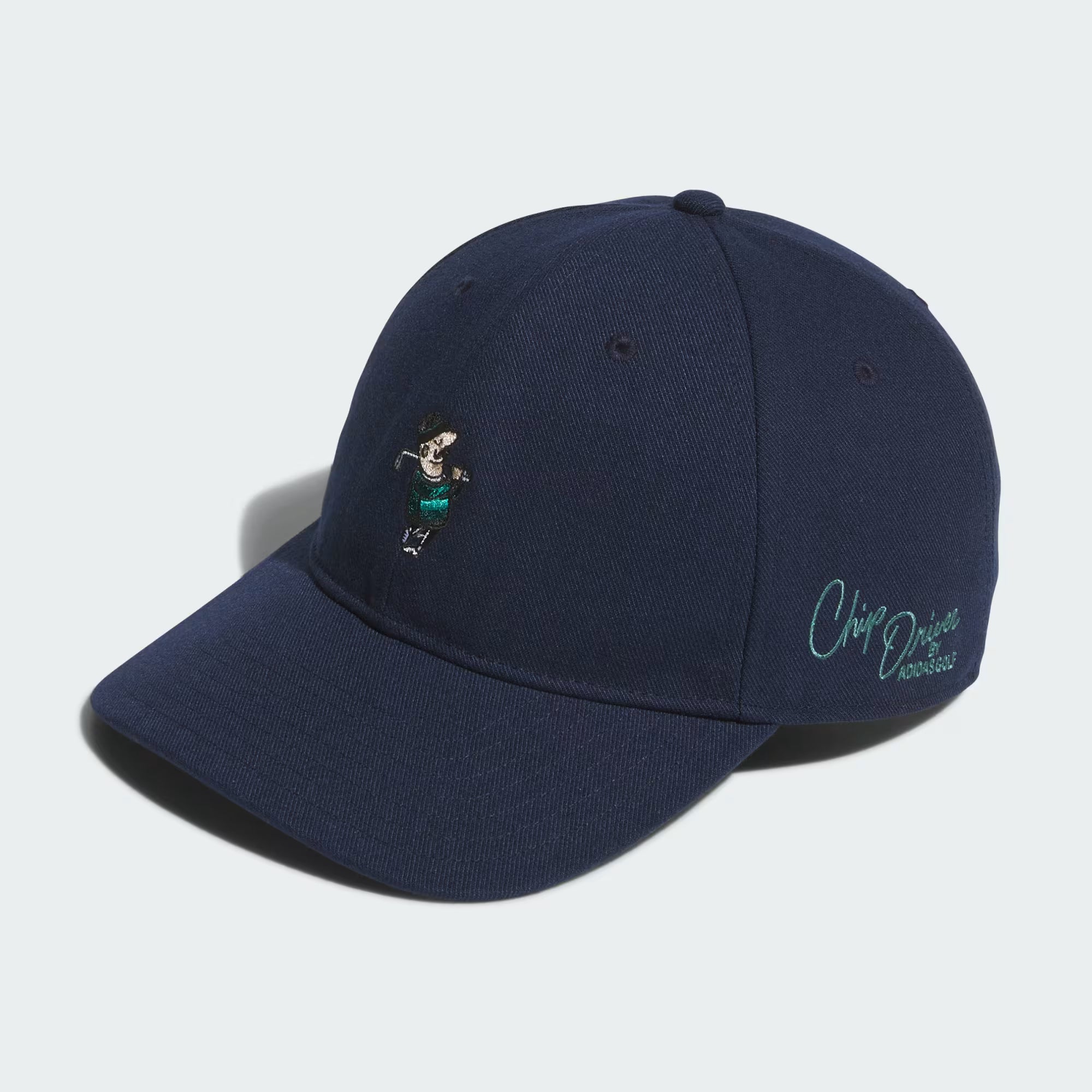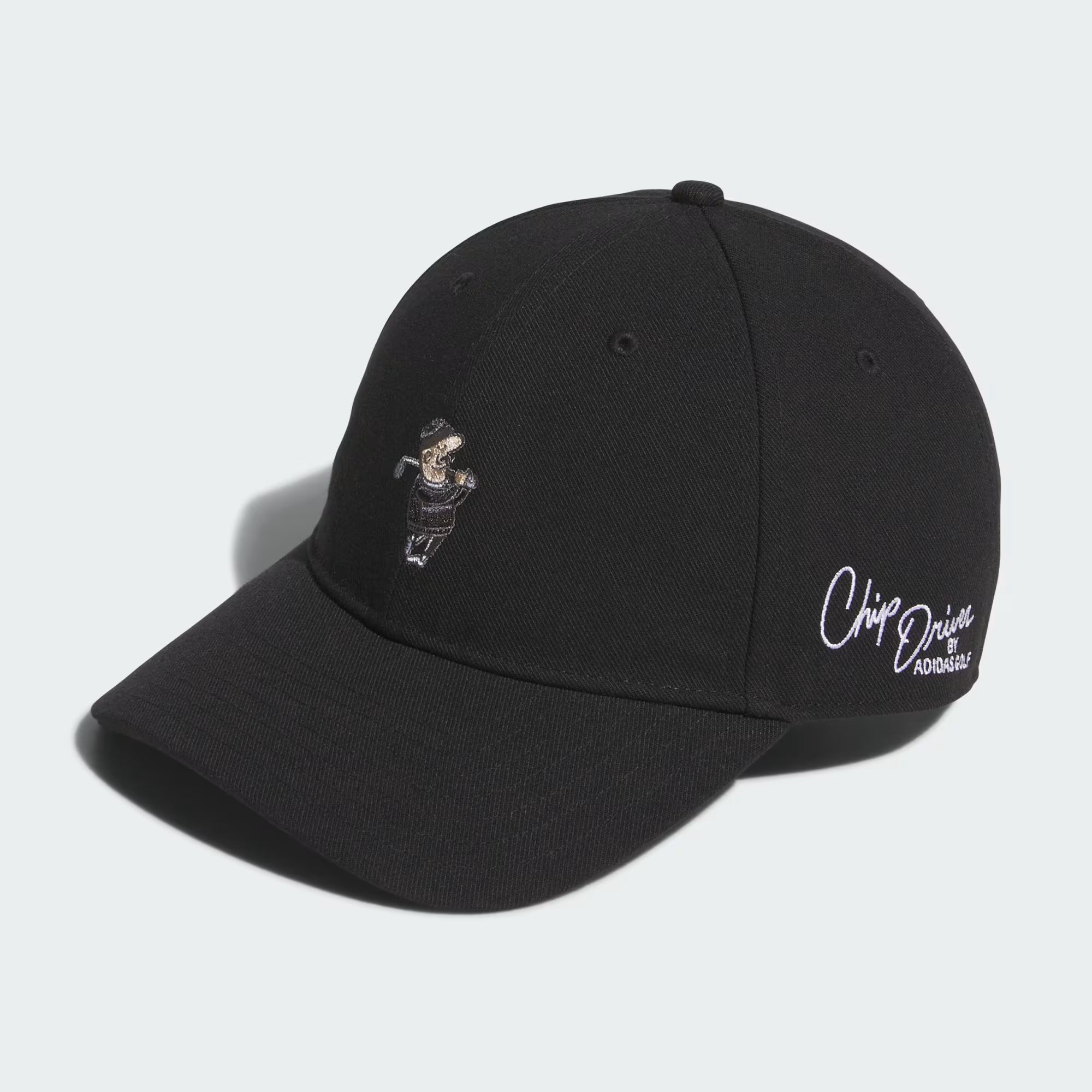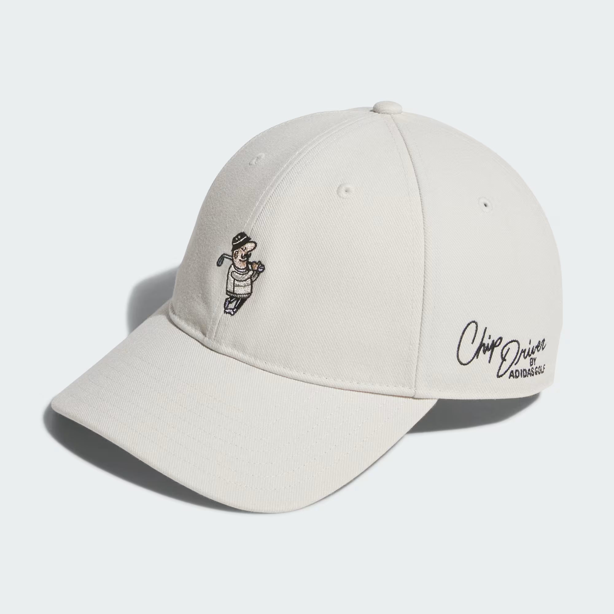 No golf uniform is complete without a ball cap. This adidas golf cap keeps it light and fun with a Chip Driver graphic front and centre