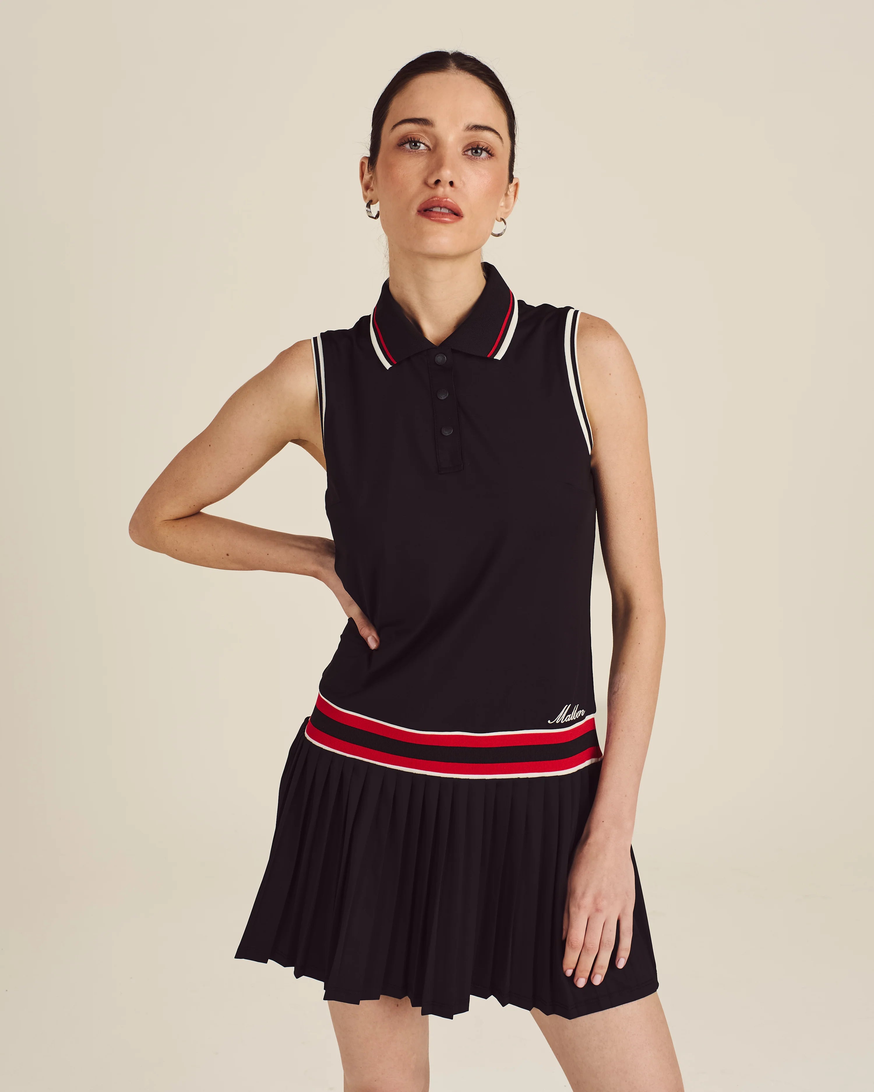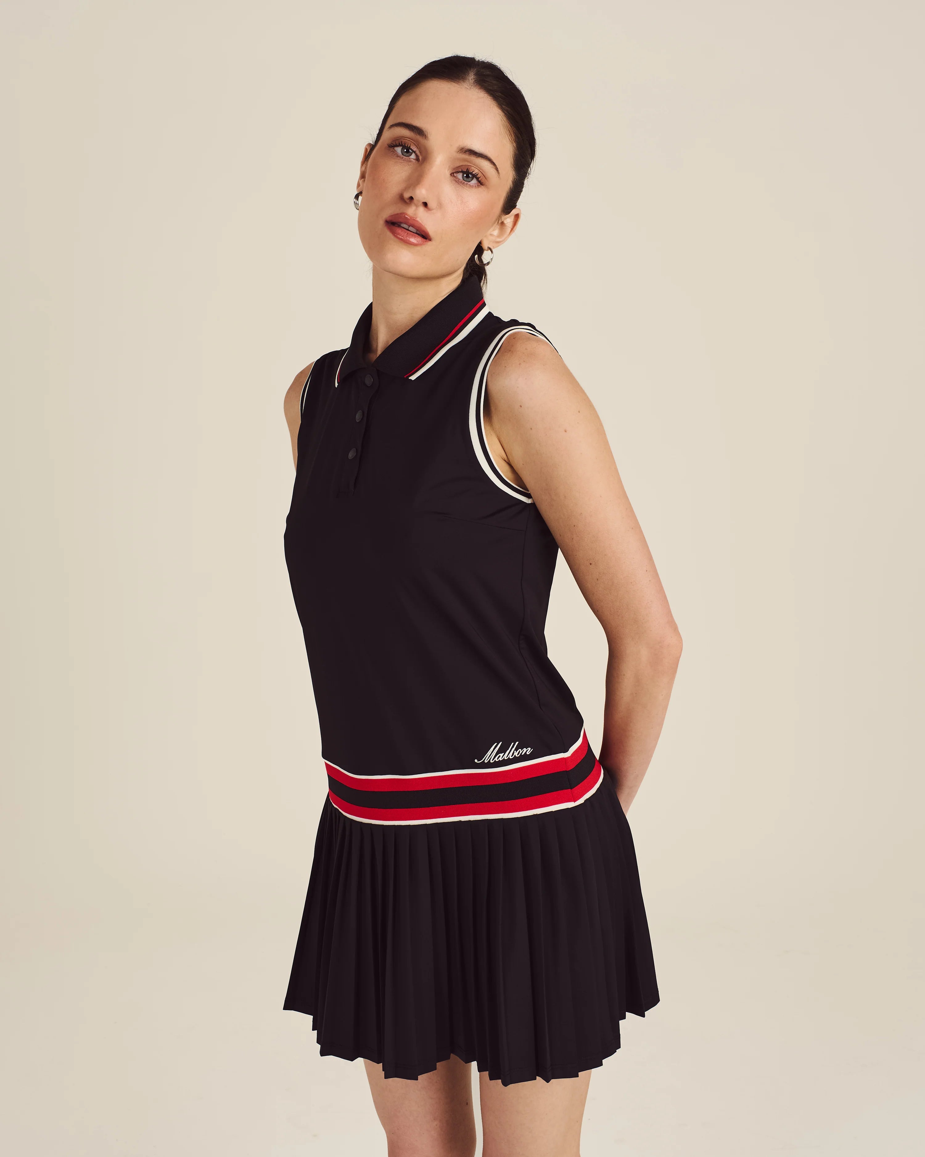 The A-line Bella Dress combines a timeless look with practical design. Featuring sophisticated pleating and premium stretch polyester that offer both structure and flexibility, it's equipped with interior shorts and convenient pocket placement. This versatile piece transitions effortlessly from golf course to coastal getaway—the perfect balance for an active lifestyle.
