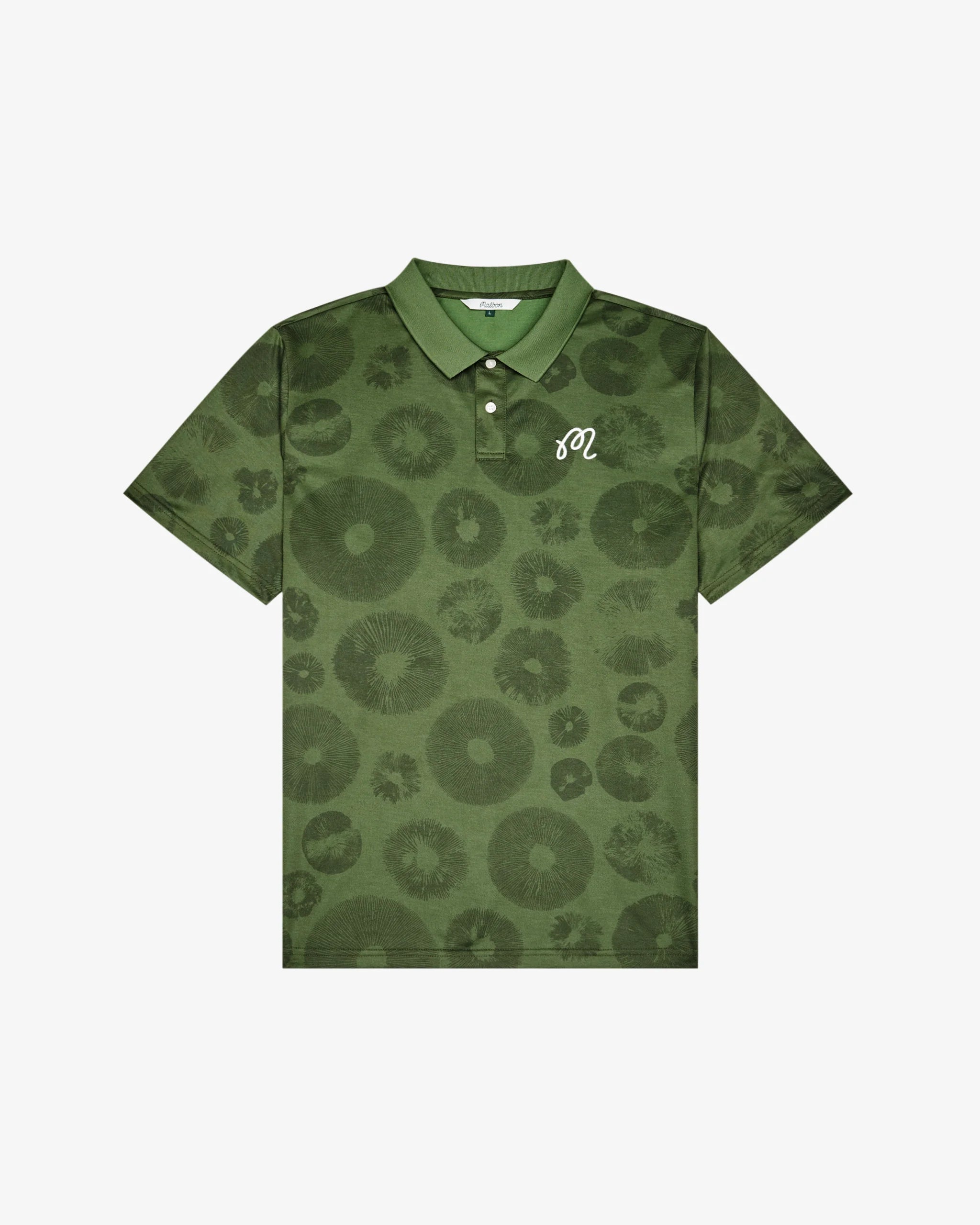 - Embroidered M script logo on left chest