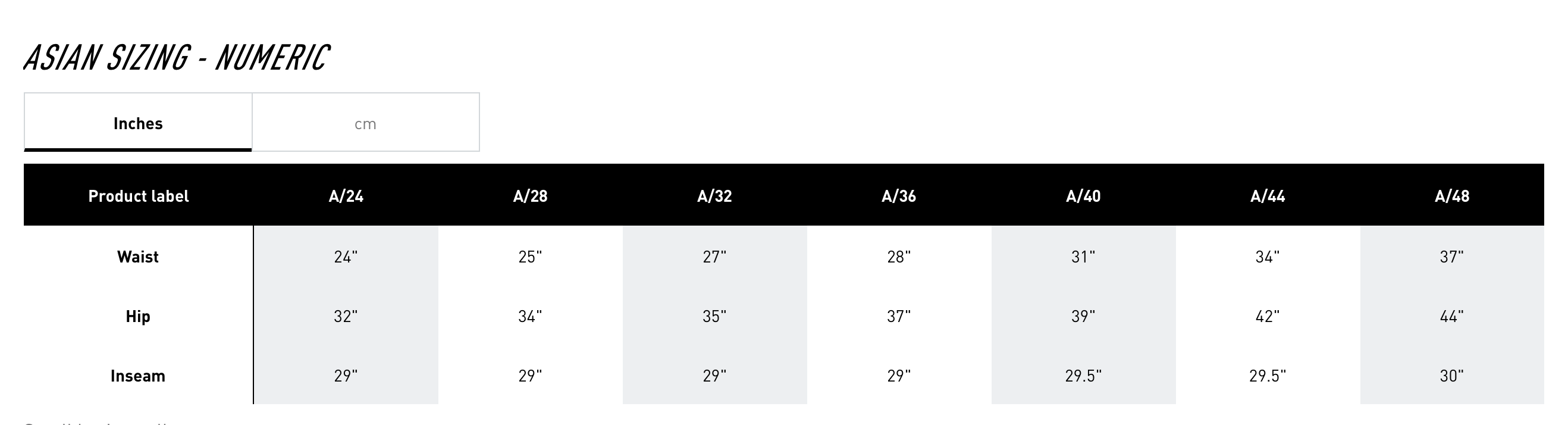 | SIZE | WAIST (INCHES) | WAIST (CM) |